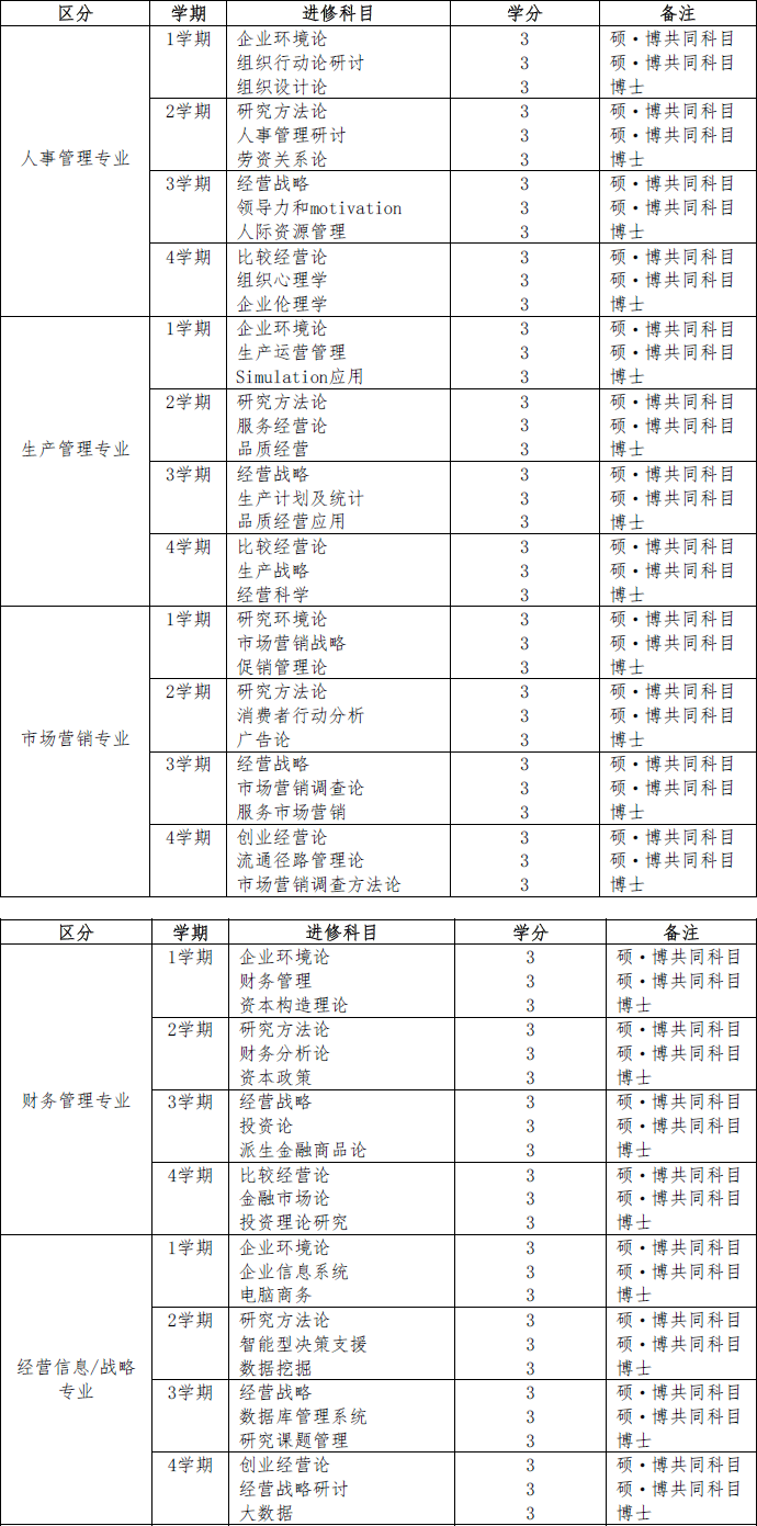 - 博士课程:由主任教授考虑硕士课程开设的科目后指定。