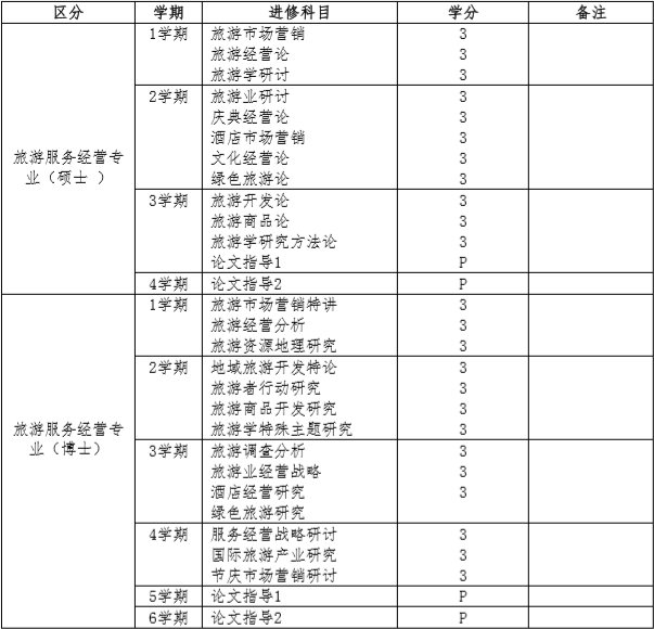 - 硕士课程:旅游营销、旅游事业论、旅游信息分析、文化旅游论、旅游学原论中选修三科