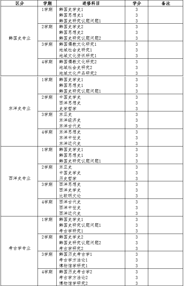 - 在研究生院科目,韩国古代史、韩国中近代史、韩国近现代史、韩国思想史、debate历史解析中选修3个科目。