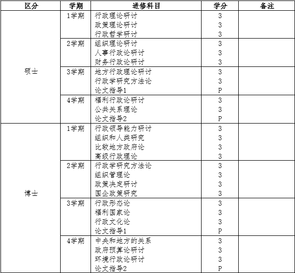 - 博士课程:行政理论研讨、行政学研究方法论、组织理论研讨